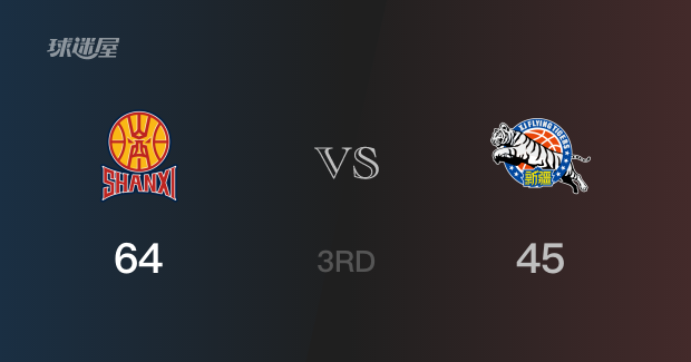 三节结束,山西以64-45领先新疆,贾明儒17分2篮板2助攻