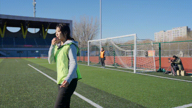 为了让奶奶们真有底、完整了解规则,作为前职业球员的马德李亲自上阵,和场上的队员们配合打了个样,一脚推射入网,轻轻松松踢进了空门。