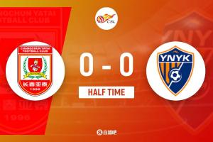 上半场比赛结束,长春亚泰0-0云南玉昆。